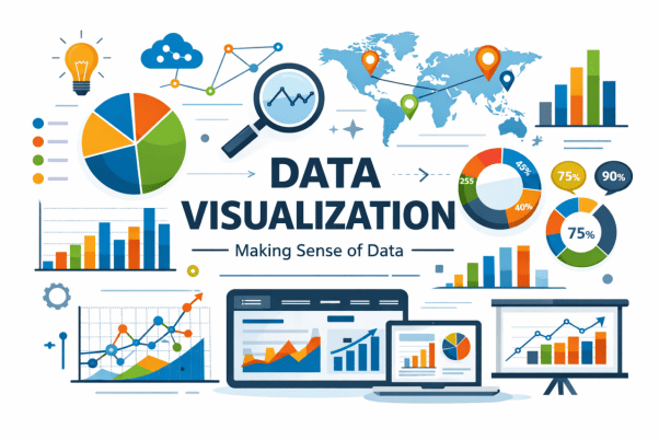 Data visualization is the graphical representation of data using charts, graphs, dashboards, and interactive visuals. It helps simplify complex datasets, making information easier to understand, analyze, and interpret.